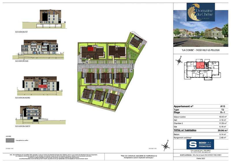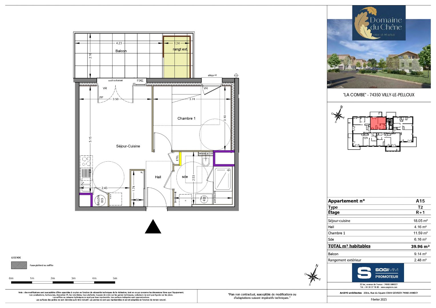 Situé entre Annecy et Genève, à Villy-le-Pelloux, le Domaine du Chêne est une résidence composée de 25 appartements neufs du 2 au 5 pièces et 11 Maisons de 3 à 5 chambres (mitoyenne et individuelle). Niché dans un cadre verdoyant, ce programme immobilier neuf offre un équilibre parfait entre nature et proximité des bassins d'emploi de la Haute-Savoie et du Léman.