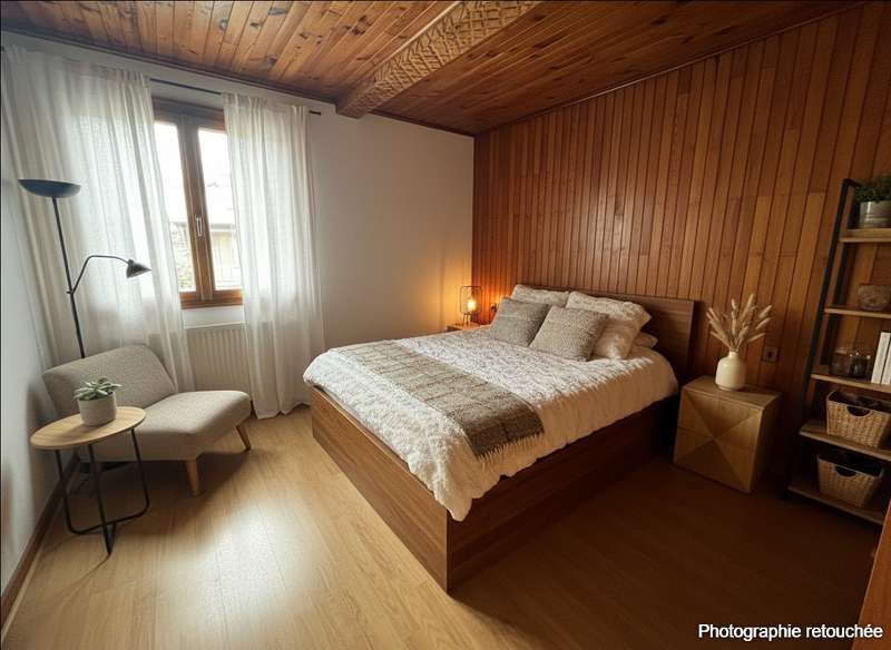 Sur un terrain arboré de 1 320 m², ce chalet de 83, 46 m² est très fonctionnel et parfaitement entretenue. Il comprend un salon séjour s'ouvrant sur un large balcon à la vue dégaée, quatre chambres dont une chambre au rez de jardin, une salle d'eau équipée. Un garage et des caves.