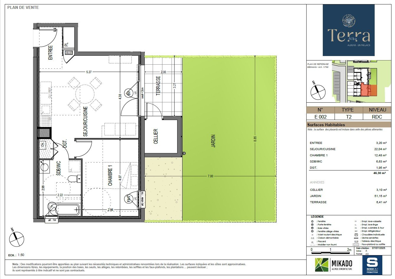 Venez découvrir dans le Programme Neuf "Terra Alba", sur la commune d'ALBENS, un Appartement T2 en Rez de Jardin de 46.30m² aux normes RE2020.
