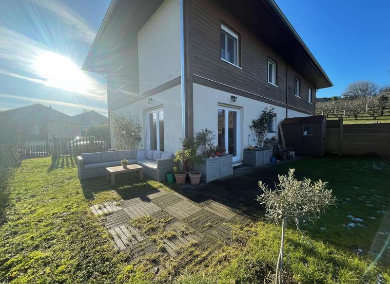 Située à Poisy, au calme d'une impasse et bordée par la nature, cette maison mitoyenne non gênante de 2014 offre un cadre de vie rare à deux pas d'Annecy.